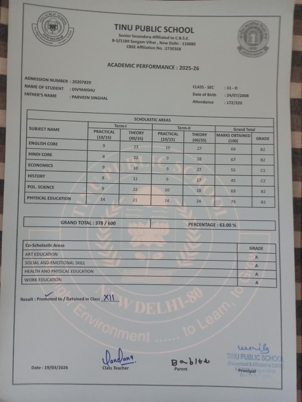 Divyanshu is 17 Years old. He is student of 12th Class in Tinu Public School. He belongs to a very poor family; his father expired in 2012, he was suffering from Cancer. Now her mother is taking-care of the family, she is doing some housekeeping works, also getting widow pension. There are 3 (Three) members in the family and no other resource of the earning. They are living with a relative, Due to very poor financial condition of the family; she is unable to afford the expenses of Divyanshu’s Education.